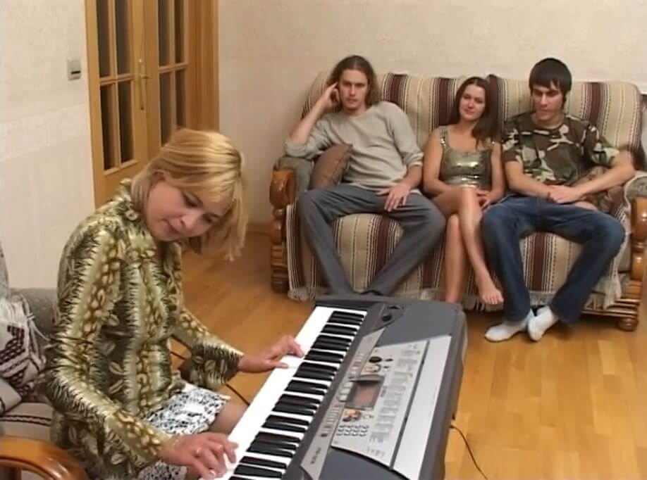 Развлечение наших русских студентов на снятой квартире. Этот полнометражный порно фильм снят в России опытными немецкими режиссерами. В кино принимают участие русские не опытные не профессионалы. Набирали чуть ли не из объявлений в газетах. Сняться в порно за деньги нашлось много желающих. Из всех выбрали самых лучших! 2006 год. Улицы столицы. По дороге проезжают лады, на светофоре ждет камаз. Приятная советская обстановка. 2 парня идут на намеченную встречу к двум молодым красивым девушкам. Они заходят в гостиную квартиры. Родители уехали на дачу на выходные. Самое время порезвиться! Блондинка усаживается возле новенького синтезатора и начинает играть классику, под которую тройка сидящих на диване уже хочет слиться в единое целое... Просто отличное начало совместного вечера!