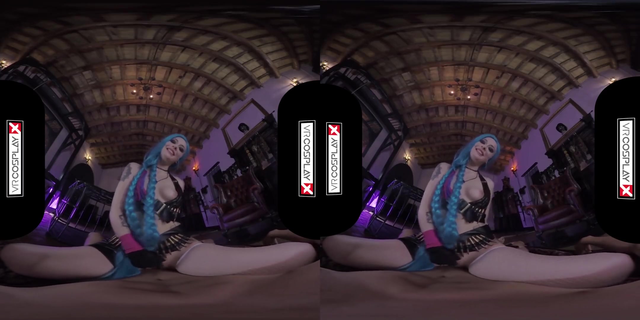 VR-porn: синеволосая красотка с длинными косами