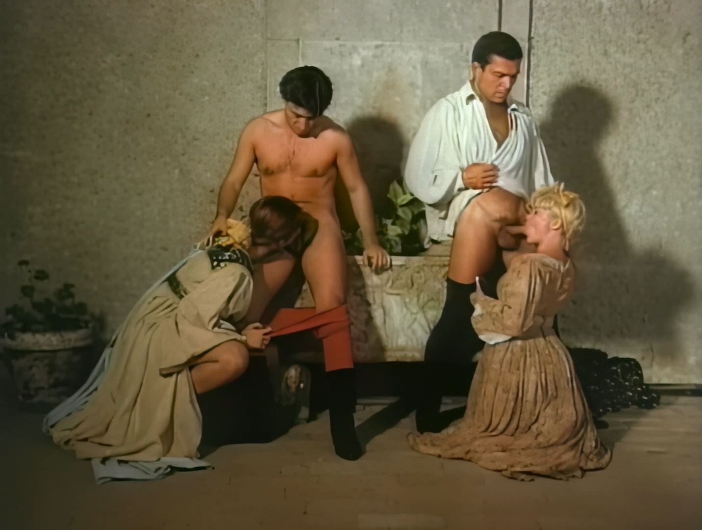 Джульетта и Ромео: Возможно, вы знаете историю под названием «Ромео и Джульетта» Билла Шекспира — трагическую песенку о двух несчастных влюбленных? Да, так вот, эта называется «Джульетта и Ромео», и хотя в ней немало несчастных (и помешанных на сексе) влюбленных, ей не хватает всей этой печальной трагедии, присущей ее предшественнице. Вместо этого, счастливый конец постигает наших великолепных двенадцати актеров, но только после того, как они примут участие не менее чем в восьми восхитительно греховных ситуациях, которые оставят у вас улыбку на лице… и пятно на шортах. Вот это романтика! В ролях в «Ромео и Джульетте»: Марк Дэвис, Стефания Сартори, Шайенн, Ева Дионисио, Лука Камиллетти, Макс Магнум, Сильбио Ладо, Джуво, Николетт, Шанталь, Катерина Альтьери и Андреа Нобили. В этом захватывающем порнофильме, полном качественной постановки, хардкорного секса и обилия эякуляций, звездный состав демонстрирует все свои таланты! Режиссер: Joe D'Amato. Студия: Capital Film, Adult Tip Top. Год производства: 1995. Страна: Италия. Жанр: Feature, Classic, European, Historical, Costumes, Anal.